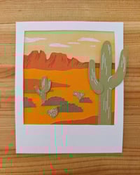 I love the vintage feel of an old-fashioned Polaroid! These hand-cut paper Polaroids are actual Polaroid size (3.5x4.25") and made to highlight some travel adventures across the country. Add on a wood block holder to easily display, current stock stained dark. Paper color and texture may vary.